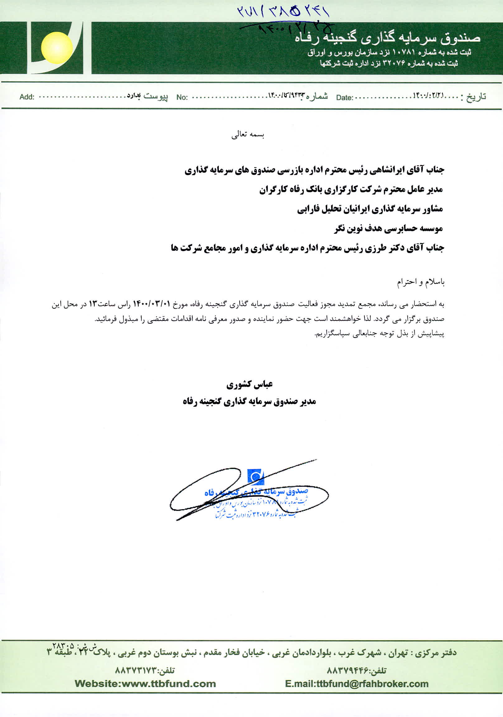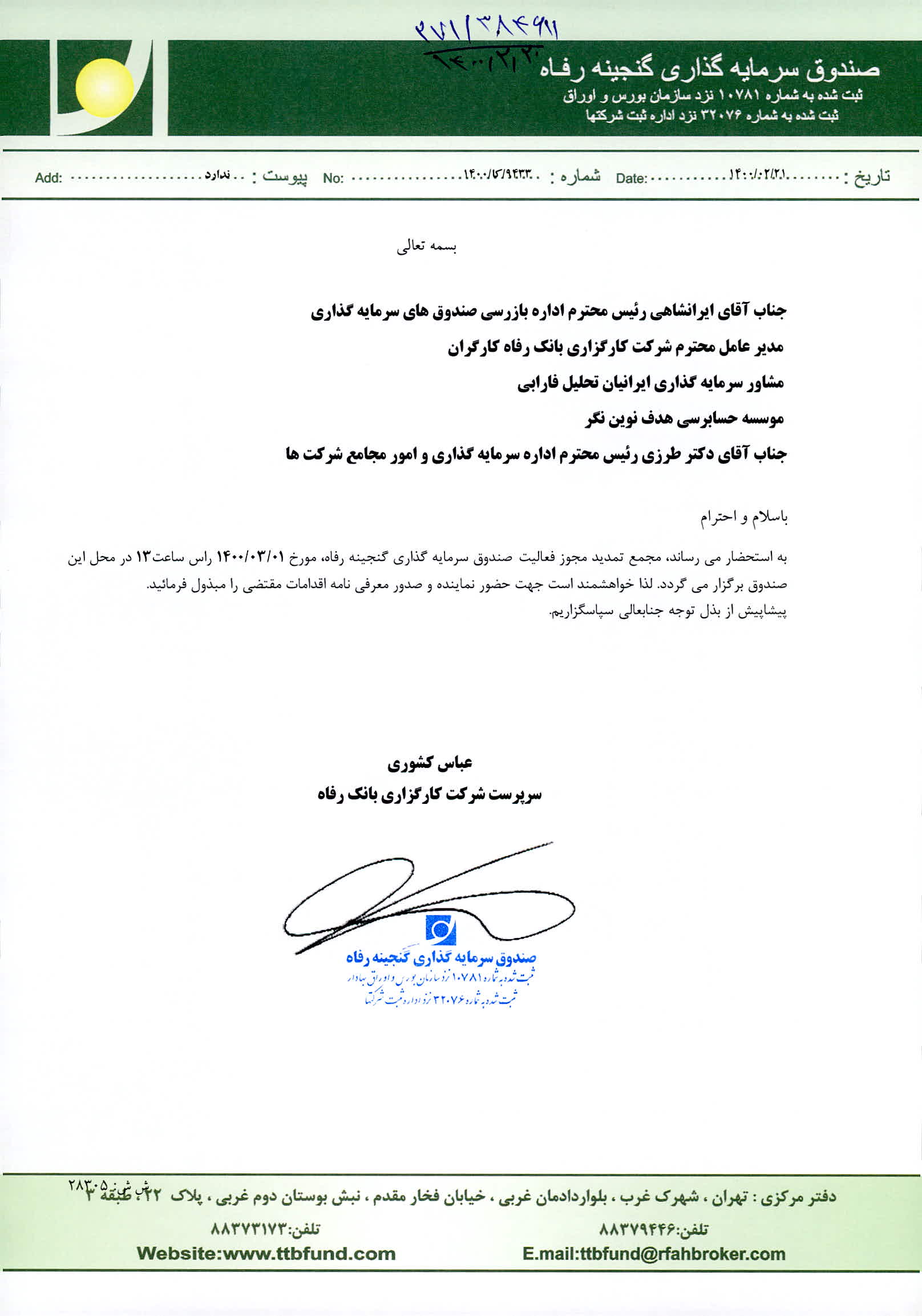 اسامی حاضرین در مجمع تمدید فعالیت صندوق سرمایه گذاری گنجینه رفاه